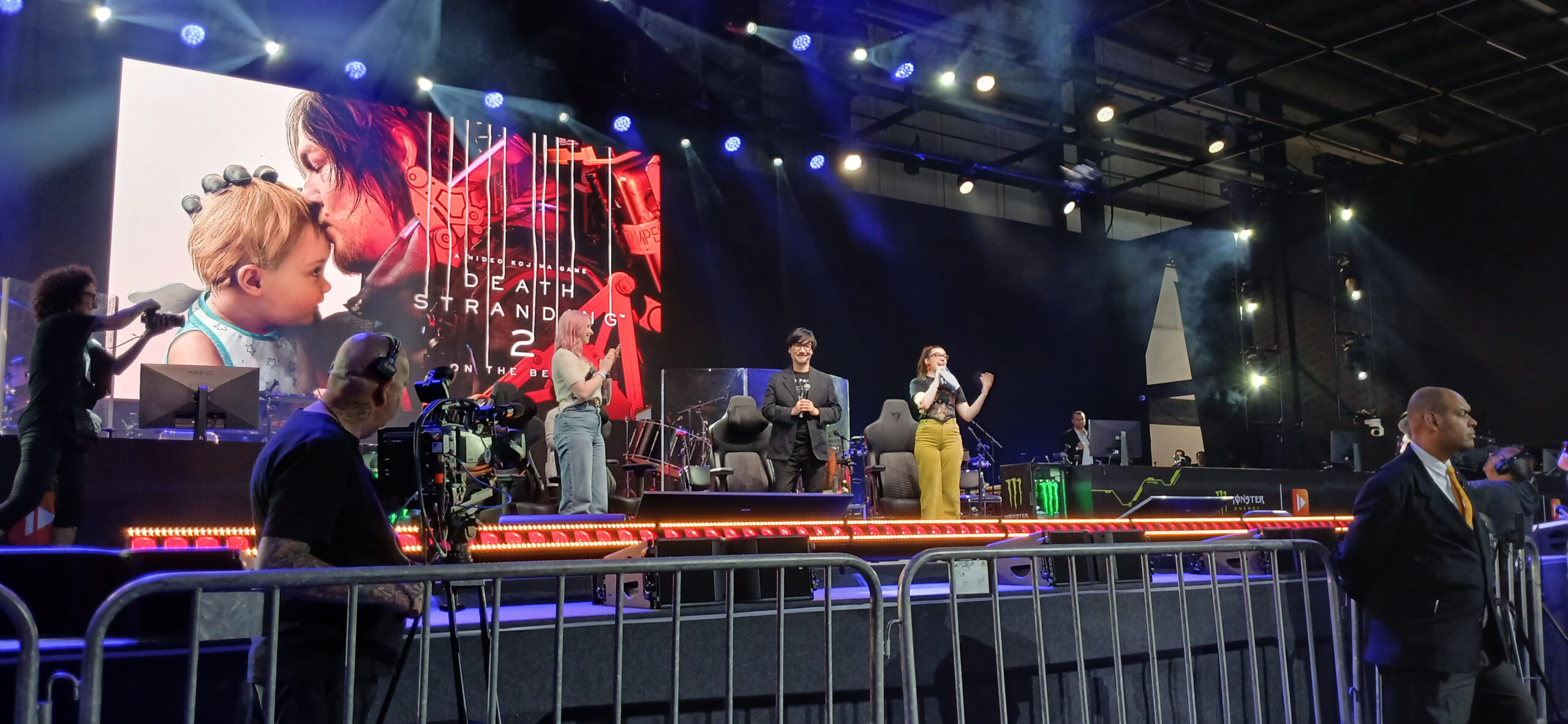 O público lotou o auditório principal, vibrando a cada menção a Death Stranding 2 e Physint, novo jogo anunciado como uma fusão de cinema e videogame. As reações emocionadas mostraram o tamanho do impacto cultural que o nome Kojima carrega. 🎥🎮